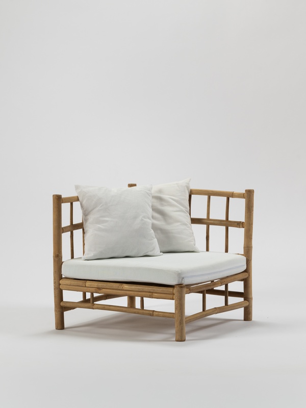Sofa piece 1,5-seater bamboo, in natural color. Includes white cushions.