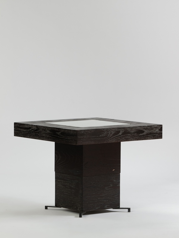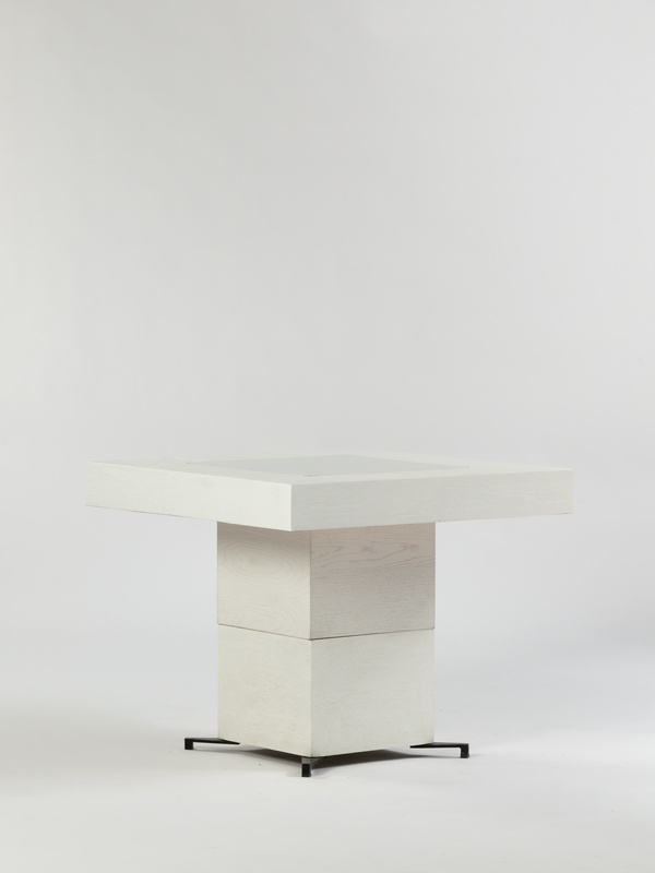 Dinner table illuminated wooden, seats up to 4 people, in white and wenge color. Battery operated multicolor LED lighting.