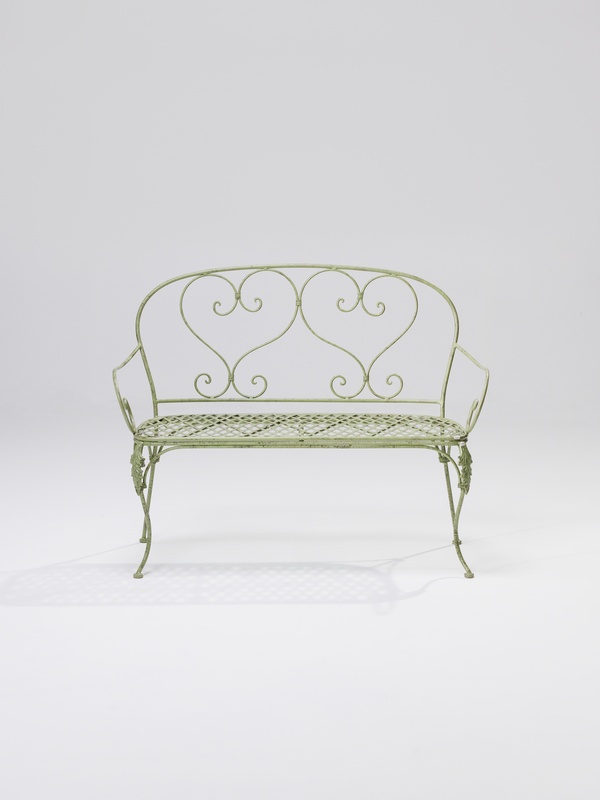 Sofa 2-seater forged, in green color. Includes white cushion.