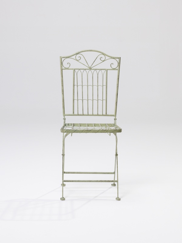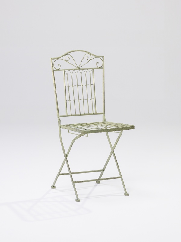 Dinner table forged round with glass on top, seats up to 4 people, in white color.