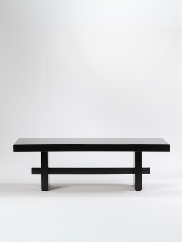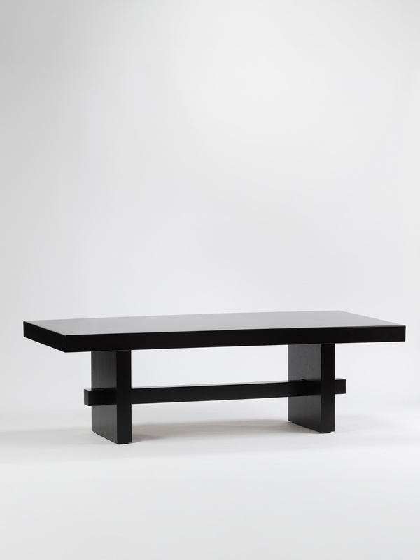 Dinner table wooden monastery type, seats up to 12 people, in black color.