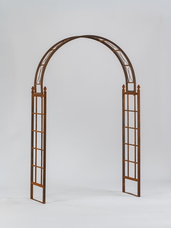 Metal arch with a rust-effect finish.